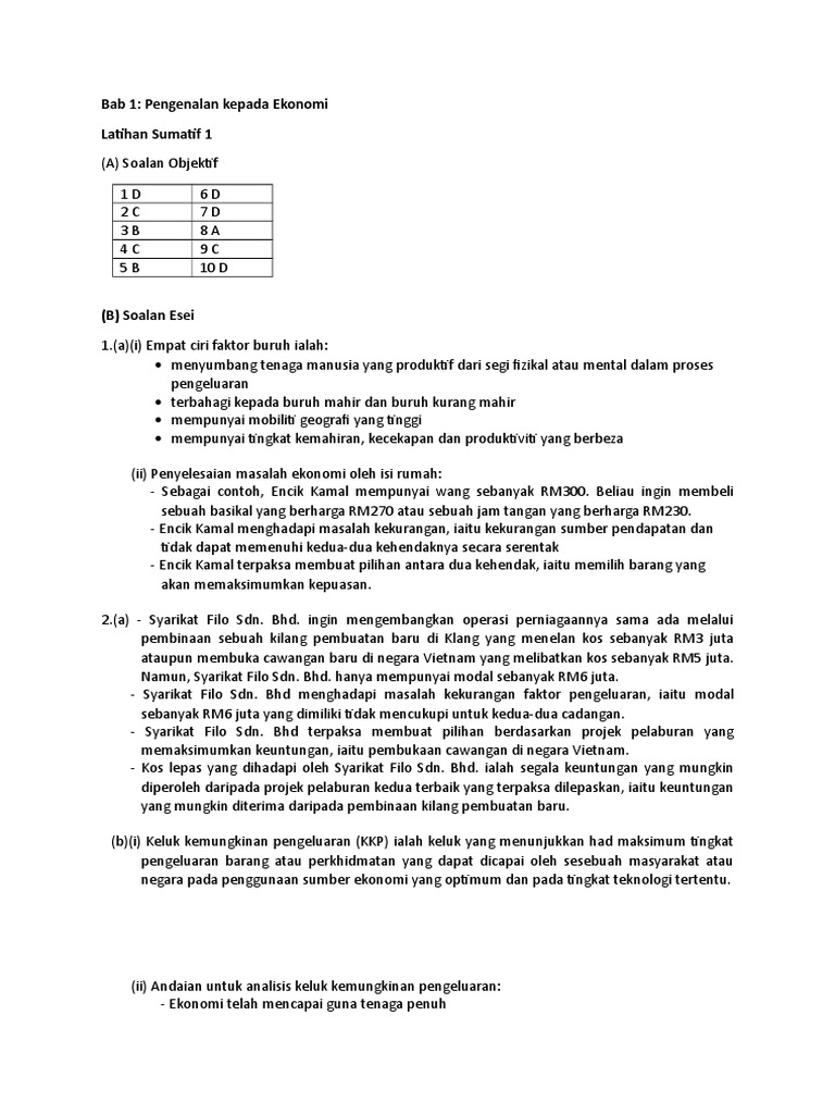 Contoh Soalan Dan Jawapan Ekonomi Tingkatan 4